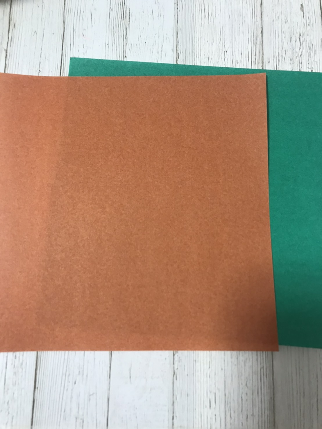 ①茶色と緑色の折り紙2枚を使います。↓