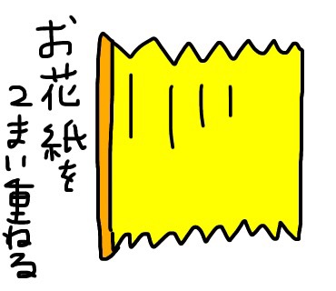 @お花紙を二枚重ねる。(色が違う方が華やかです)
