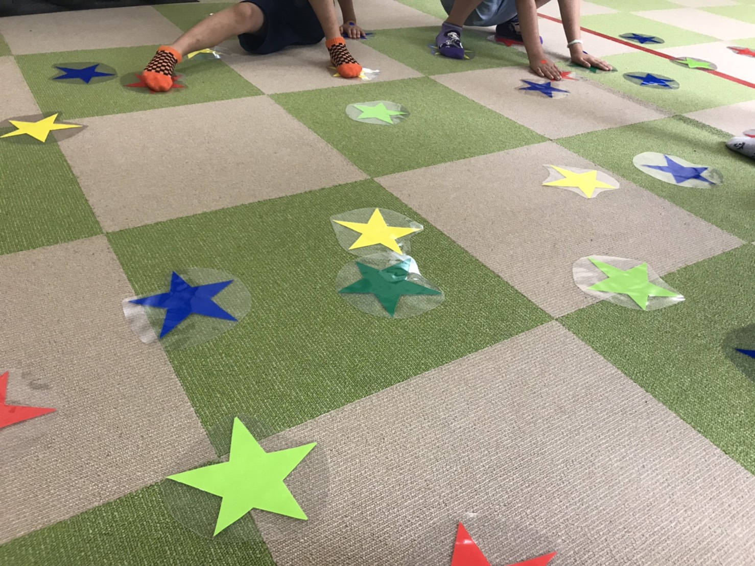 七夕遊びでお星さまツイスター☆を紹介します(^^♪![]() 右手・左手・右足・左足・頭・お尻・背中 様々な身体のパーツを使って天の川を渡り切る遊びです(^^♪ ![]() 皆様はどんなお願い事をしましたか? 七夕は、年に1度織姫と彦星が天の川を渡って会える日です(^^♪ 今年は晴れるかな・・・ 施設では、プレイルームに たくさんの手作りお星さまを散りばめました☆ ![]() こんな風に、お部屋に天の川を作ります(^^♪ そして、『左手は青~🎵』 身体のパーツで言われた色を触っていきます。 ![]() ↑ありゃ右手が青になってる(笑) 右手左手が分からない場合は、分かりやすいように手に カラーシールを貼ったりして分かるように支援します(^^♪ ![]() 広い空間でできるので、距離も保ちながら遊べていいですね(^^♪ 滑らないようにラミネートの下は滑り止めを貼るのもおすすめです('ω')ノ スタートとゴール位置を決めて天の川を渡りきるのが とっても楽しいです💛 ![]() 笹の葉サラサラ~🎵みんなで七夕も楽しんでくださいね('ω')ノ |