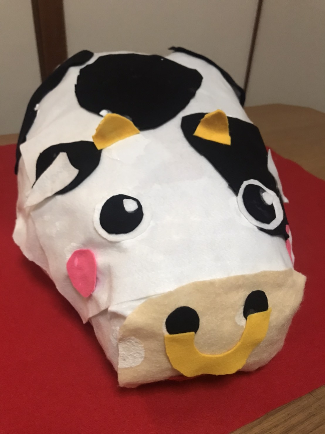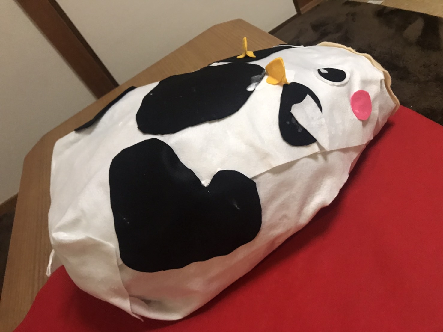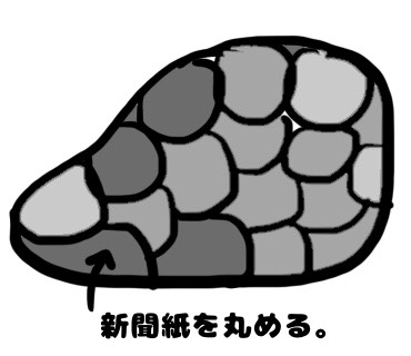 作り方は、散々遊んだ新聞紙を使って土台を作りました。