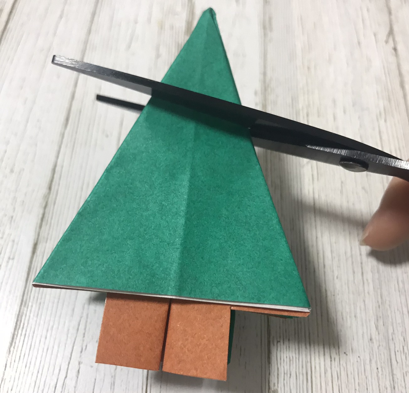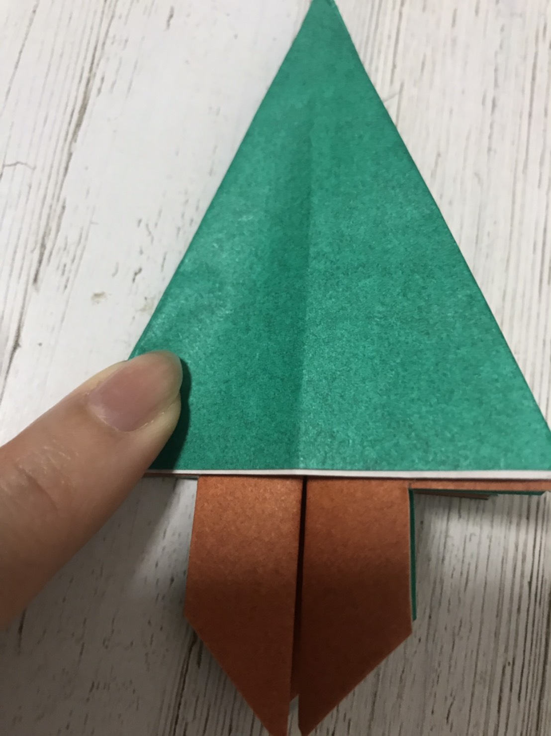 ①茶色と緑色の折り紙2枚を使います。↓