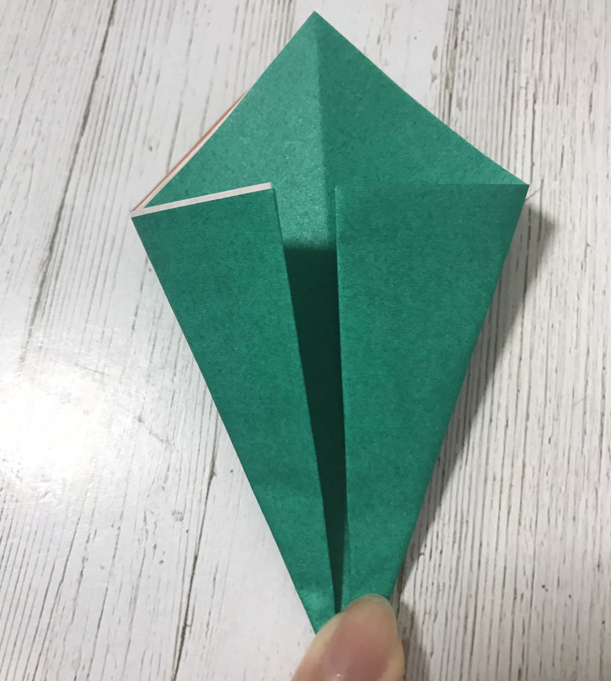 ⑦折ったところを広げて折ります。↓