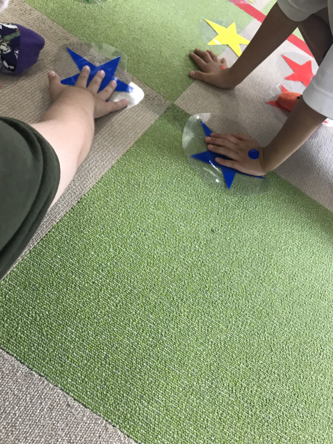 七夕遊びでお星さまツイスター☆を紹介します(^^♪![]() 右手・左手・右足・左足・頭・お尻・背中 様々な身体のパーツを使って天の川を渡り切る遊びです(^^♪ ![]() 皆様はどんなお願い事をしましたか? 七夕は、年に1度織姫と彦星が天の川を渡って会える日です(^^♪ 今年は晴れるかな・・・ 施設では、プレイルームに たくさんの手作りお星さまを散りばめました☆ ![]() こんな風に、お部屋に天の川を作ります(^^♪ そして、『左手は青~🎵』 身体のパーツで言われた色を触っていきます。 ![]() ↑ありゃ右手が青になってる(笑) 右手左手が分からない場合は、分かりやすいように手に カラーシールを貼ったりして分かるように支援します(^^♪ ![]() 広い空間でできるので、距離も保ちながら遊べていいですね(^^♪ 滑らないようにラミネートの下は滑り止めを貼るのもおすすめです('ω')ノ スタートとゴール位置を決めて天の川を渡りきるのが とっても楽しいです💛 ![]() 笹の葉サラサラ~🎵みんなで七夕も楽しんでくださいね('ω')ノ |